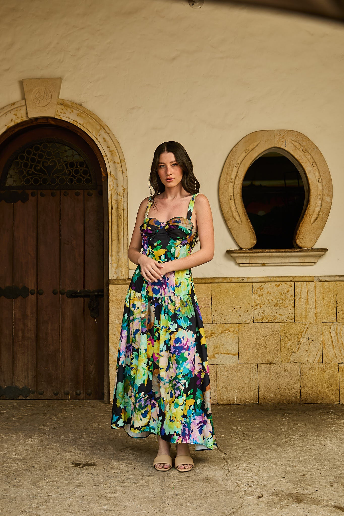 VESTIDO NEGRO CON FLORES DE COLORES