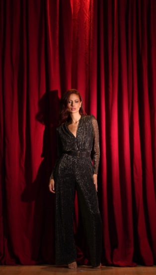 enterizo de pantalon brillante manga larga