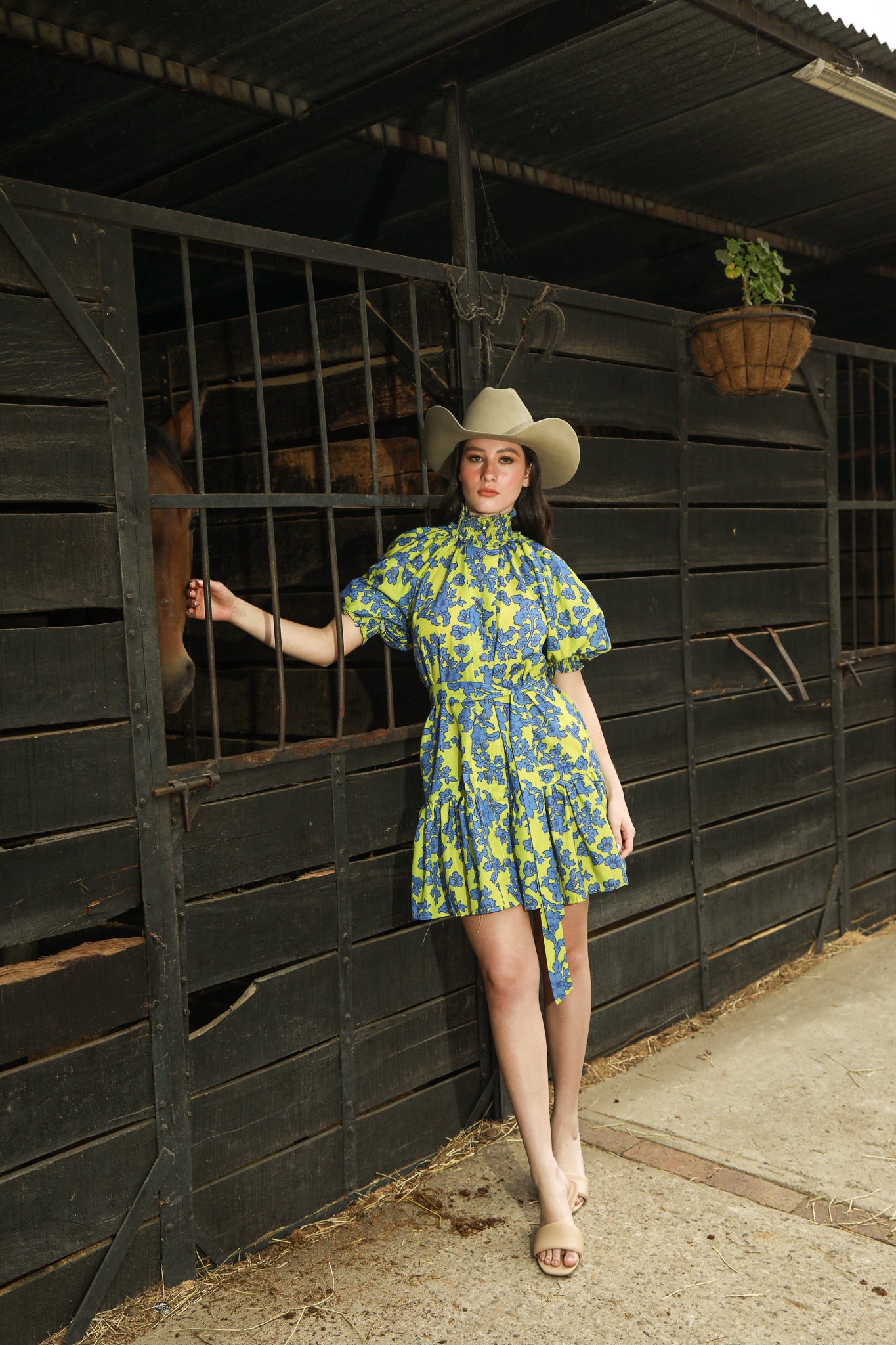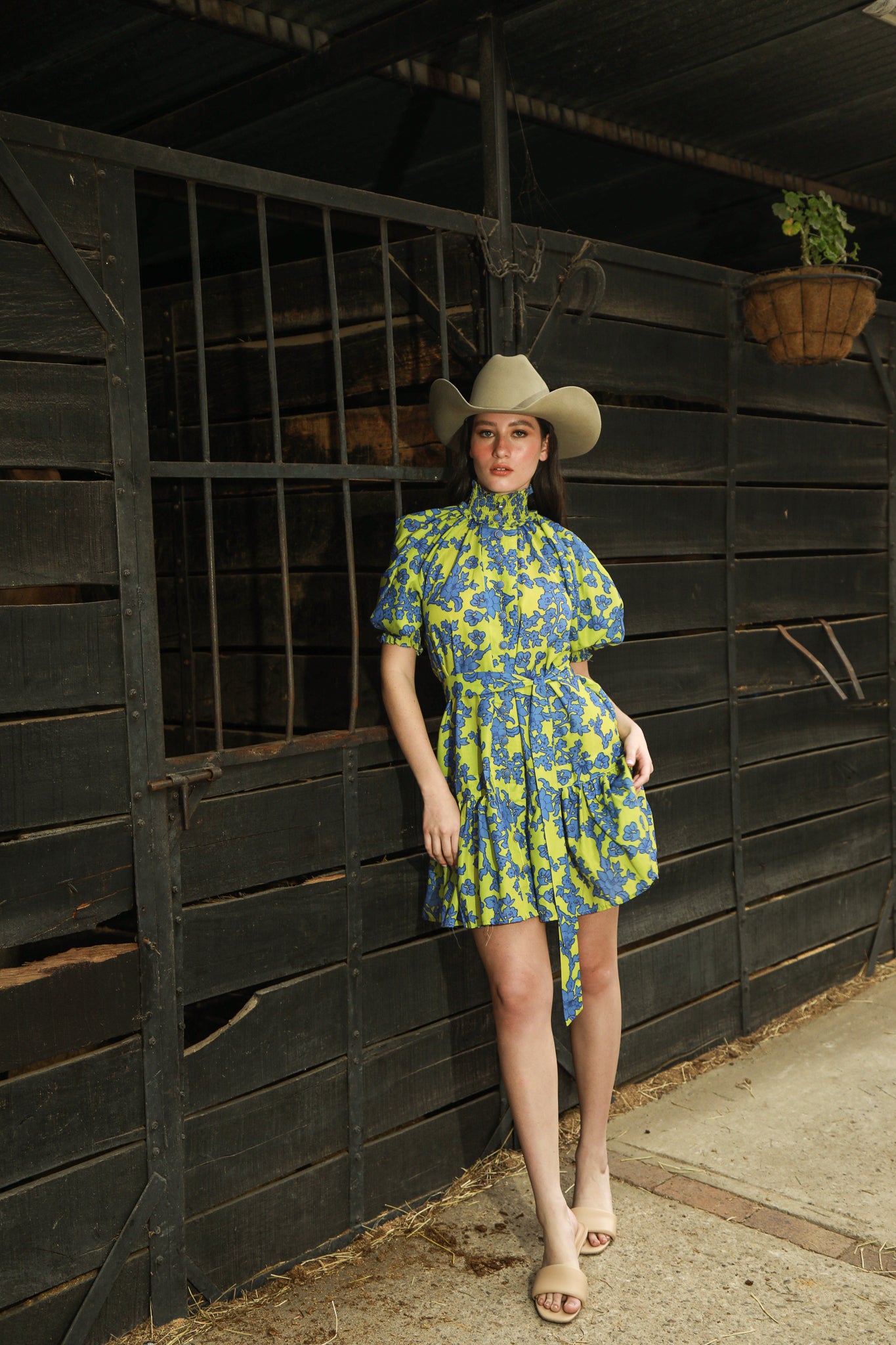 VESTIDO VERDE CON FLORES AZULES