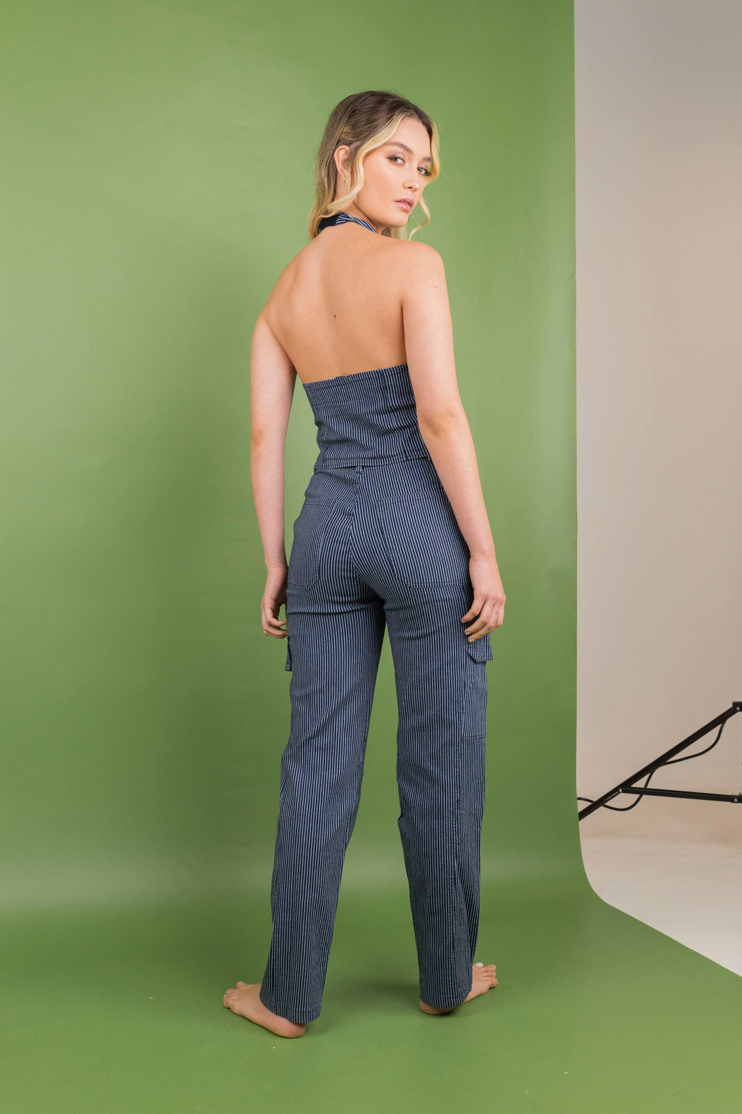 Set chaleco y pantalon azul jean lineas
