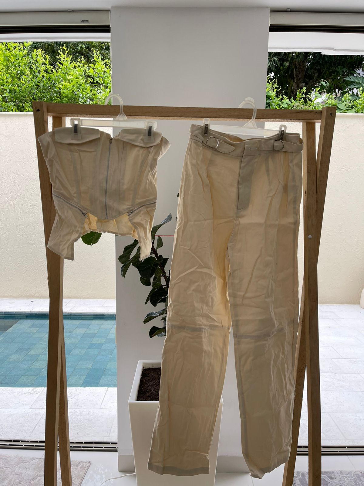 SET BEIGE DE CREMALLERAS PLATEADAS