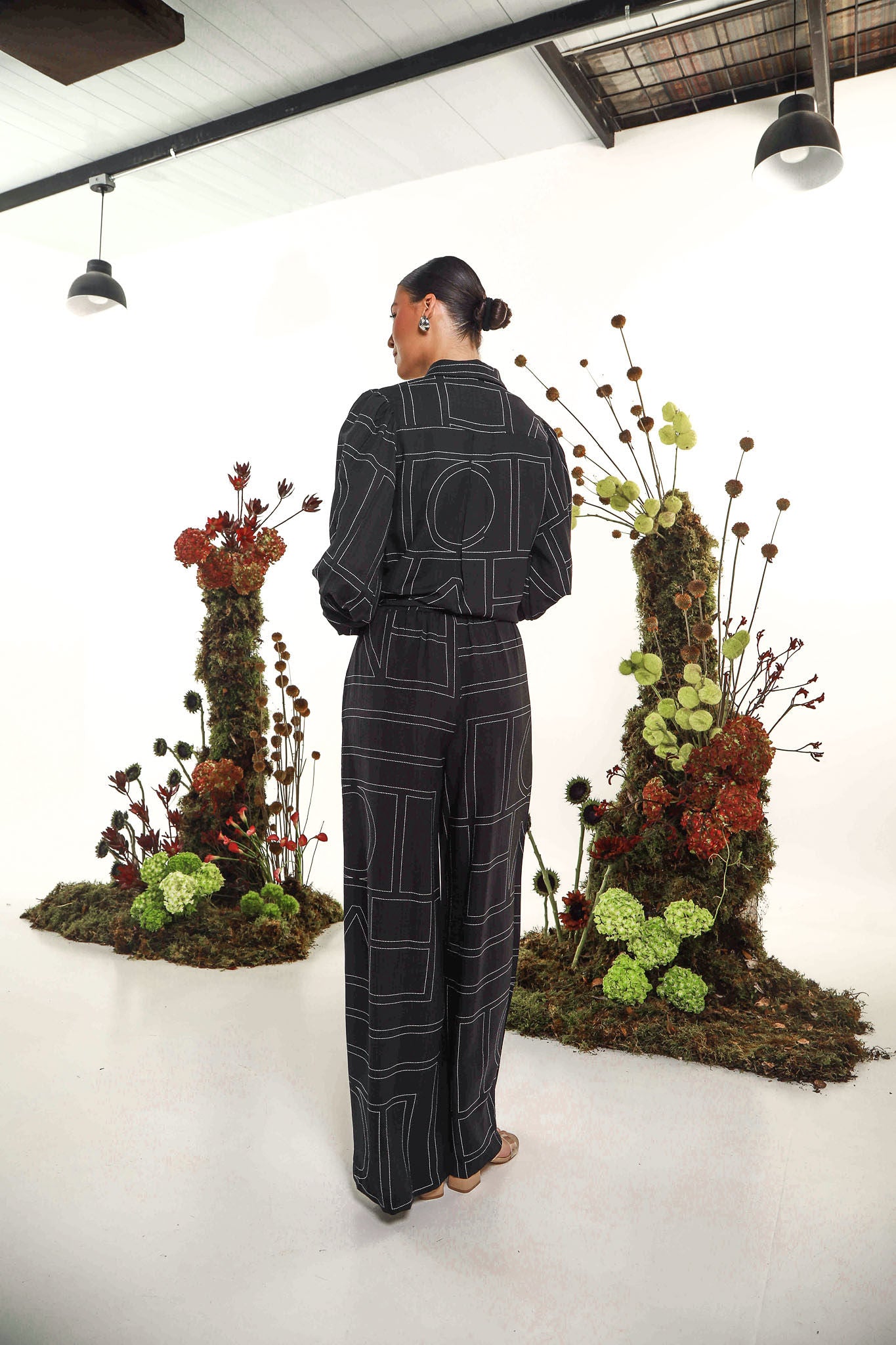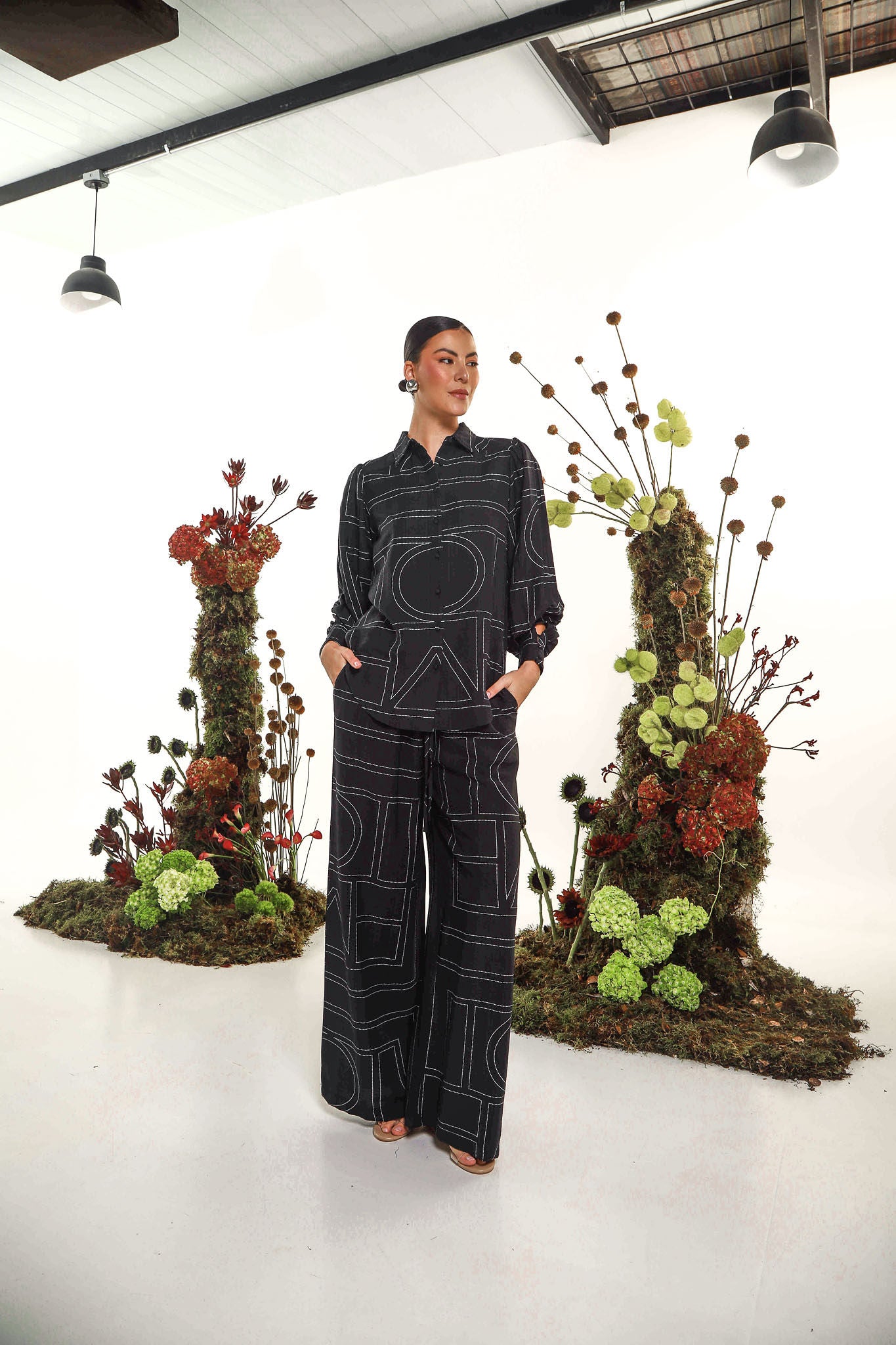 SET NEGRO BORDADO DE PANTALON Y CAMISA